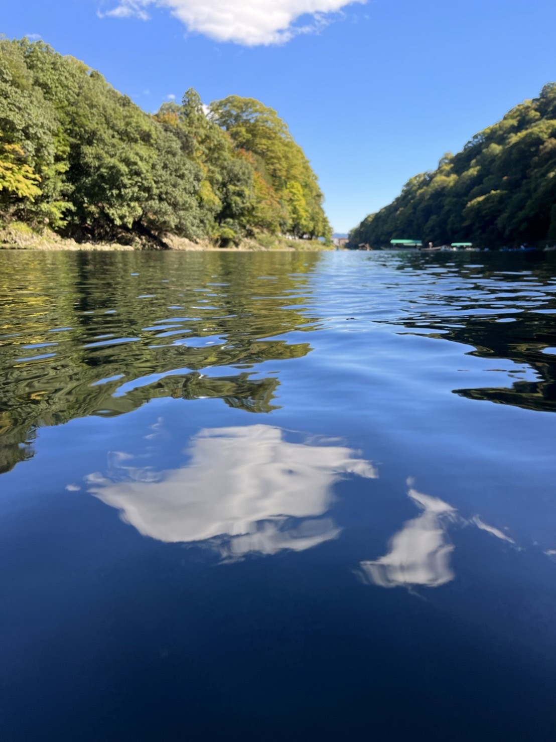 渡月橋の奥で気持ちよさそうにボートを漕いでいる方を見て、自分も体験したくなりボートに初チャレンジしてみました。予想してたより、難しかったですが、天候も良く気持ちよかったです。
